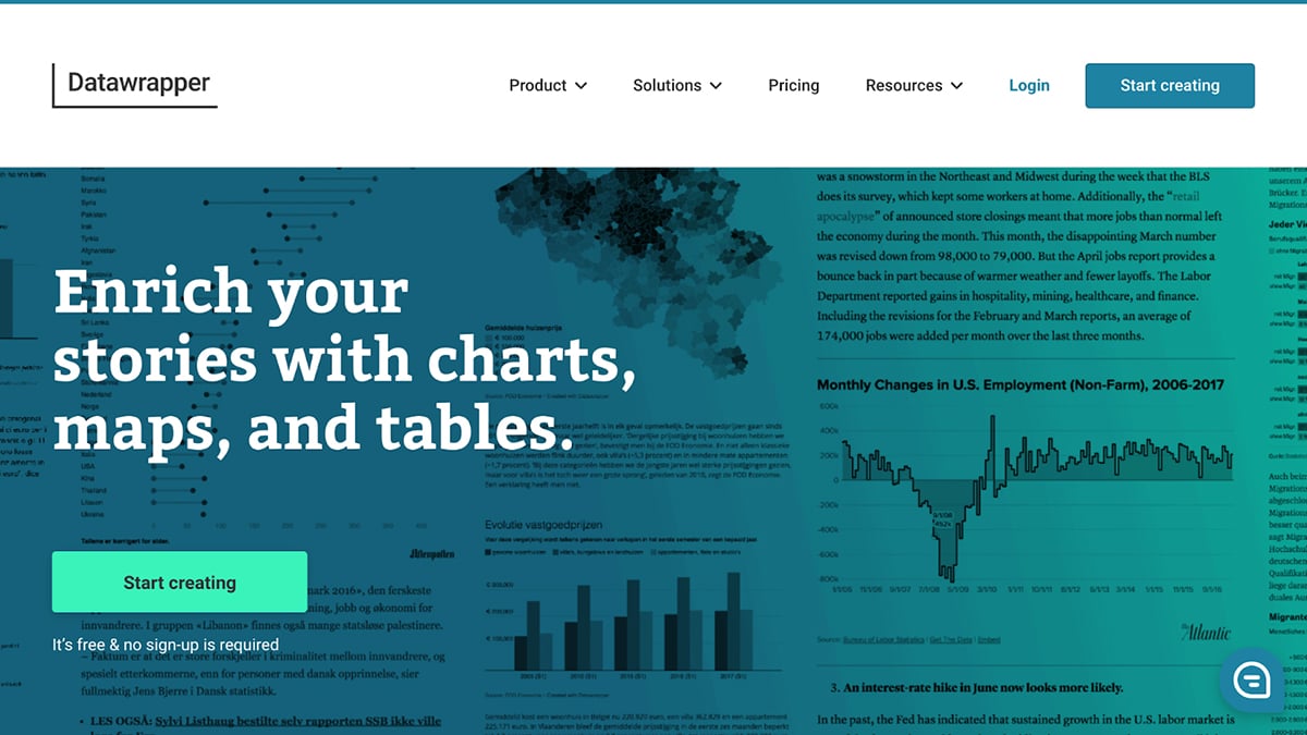 Data wrapper is an open-source and easy-to-use data visualization software where you can create basic charts and graphs, maps and line charts that can be embedded into your website.