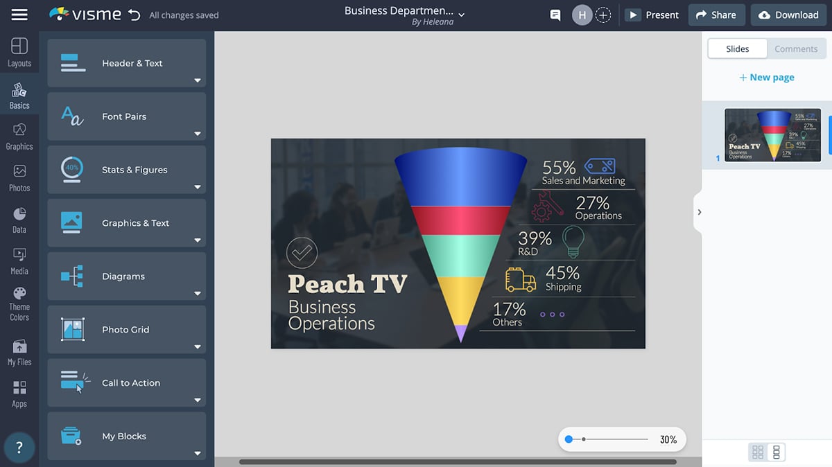 Visme makes it easy for both designers and non-designers alike to visualize their data in interactive and engaging ways.