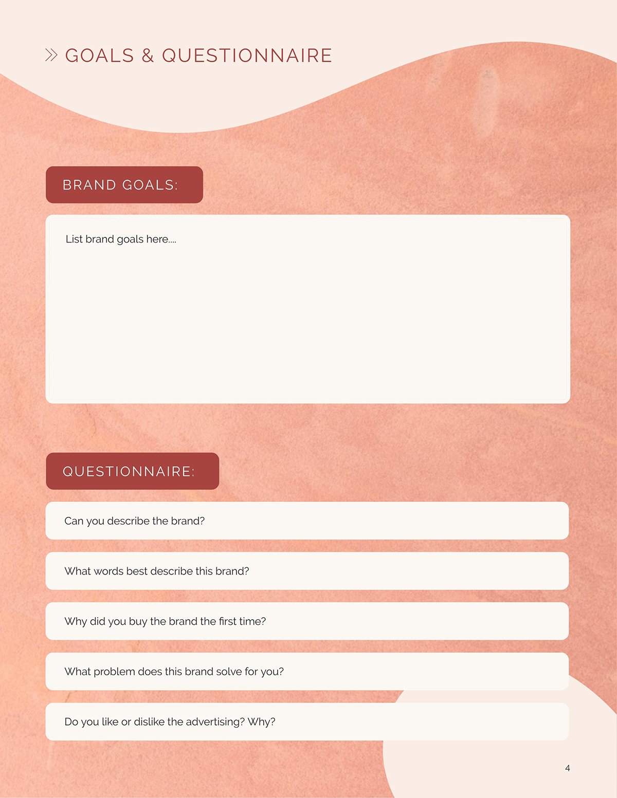 The template below is part of a complete Brand Audit, where you can note down the main goals and then customize the questions depending on your KPIs.