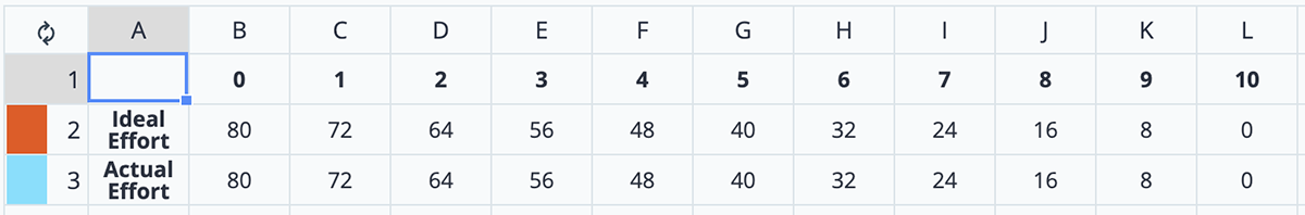 At first, your actual effort can just match the ideal effort. Then you’ll go in each day and update with how many hours you actually have remaining until the project is complete.