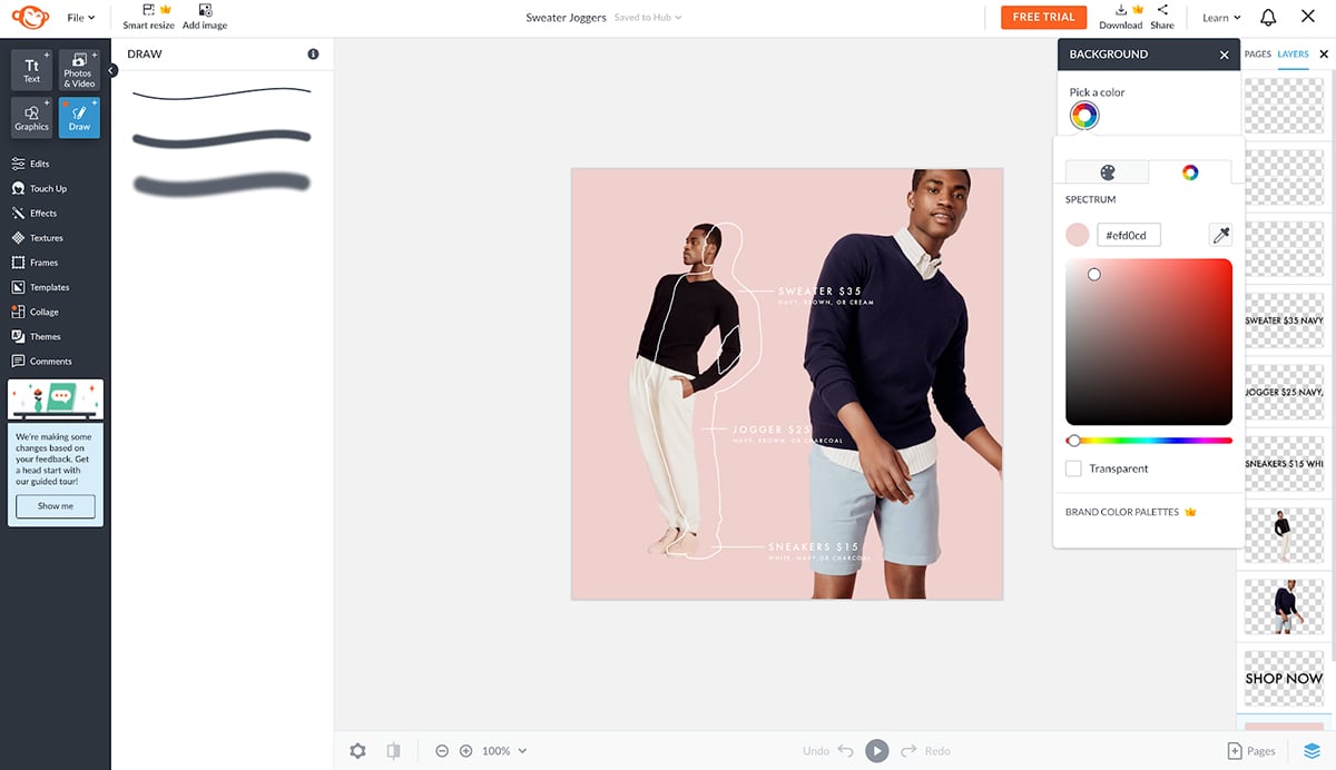 Unless you pay the monthly fee, or if you’re lucky enough to have not used your 7-day trial yet, the only way you can use their design platform for free is via the mobile app.