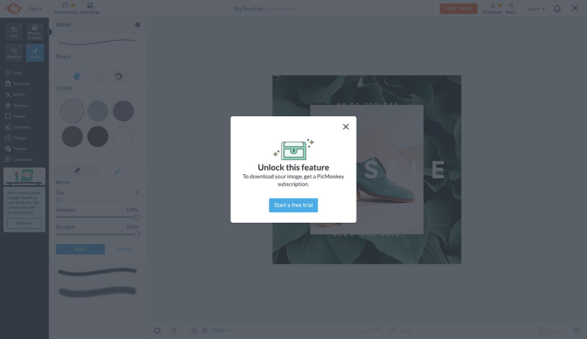 As I mentioned earlier, if you like to work from a laptop or desktop to create your designs and you’re looking for a free tool, unfortunately, PicMonkey isn’t for you.