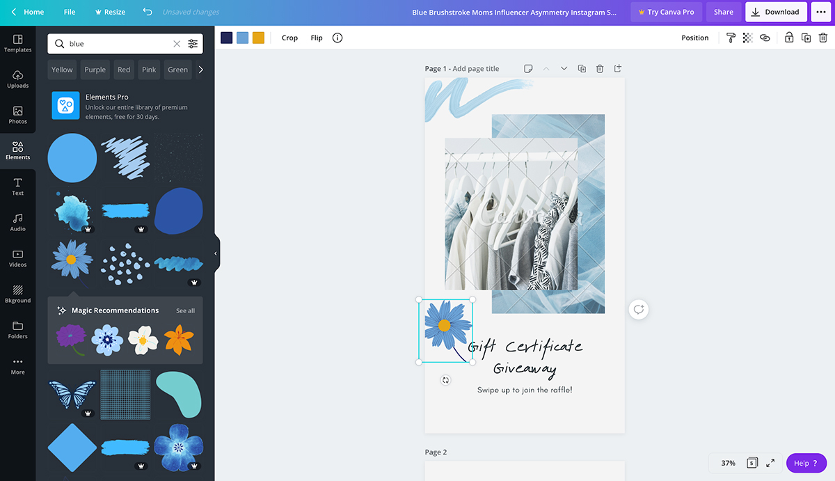 You can get around pretty well by using the free version, but it can become a bit restricting, as most of the nice parts of Canva that you’ll want to use will require you to upgrade to a Canva Pro account.