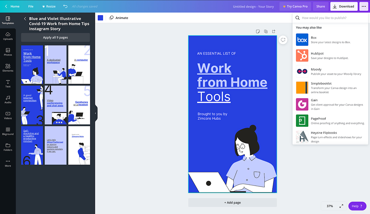 If you want to skip a few extra steps and save time when posting to social media, why not do it directly from the app? Connect your social media accounts to Canva and hit the share button, directly within the design tool.