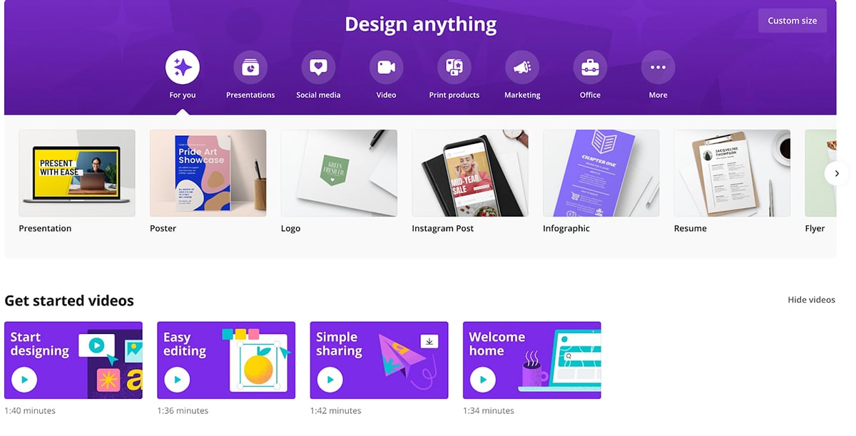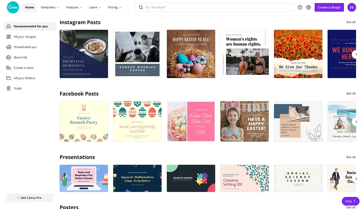One of the greatest advantages of Canva is that everything is pretty straightforward and the software has a fairly gradual learning curve.