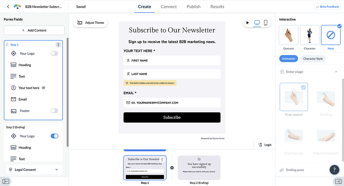 Aside from conditional logic, Visme Forms also has plenty of practical features to help you create engaging forms for your audience. For example: