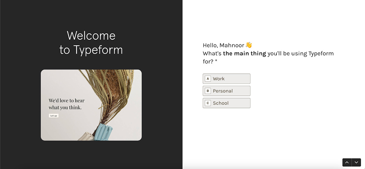 The best part about Typeform’s onboarding experience is that they use their own product to collect initial info. That way, new users know exactly what they can create with the platform.