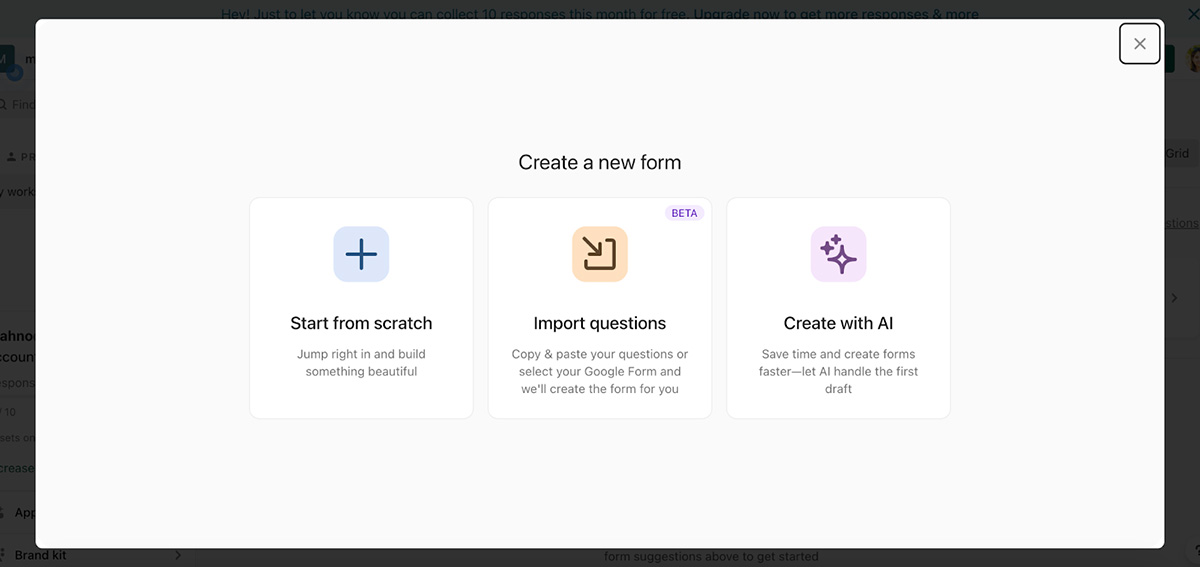 Once you’ve signed up and answered their questions, they give you three options to get started and create a new form.