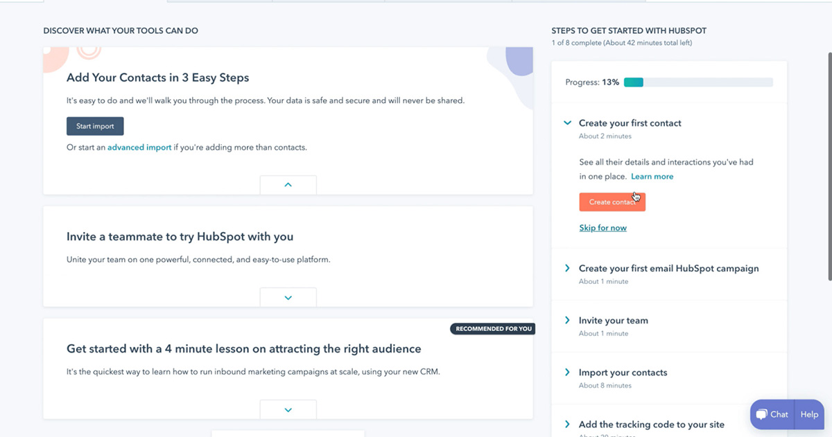For example, HubSpot uses a progress bar to show new users how far along they are in the ‘getting started’ process and encourage them to complete it.