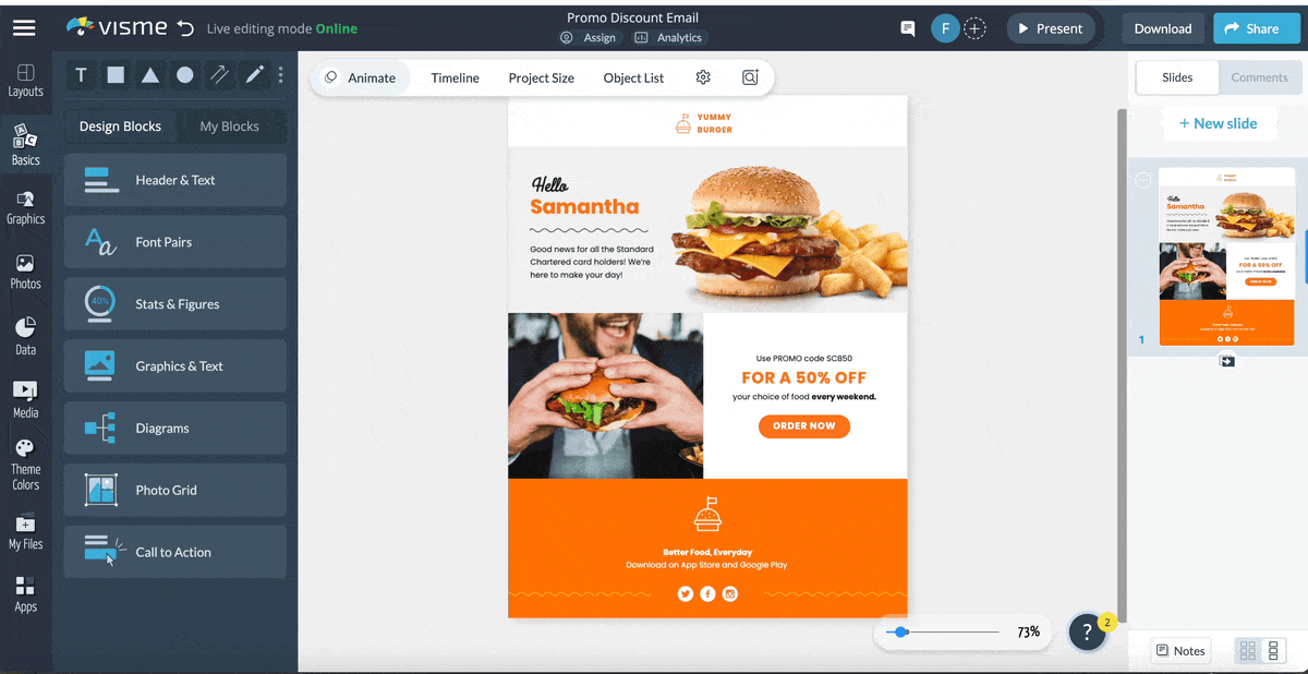 Thankfully, Visme's professional email design templates and user-friendly interface make it easy to create a functional and beautiful design.