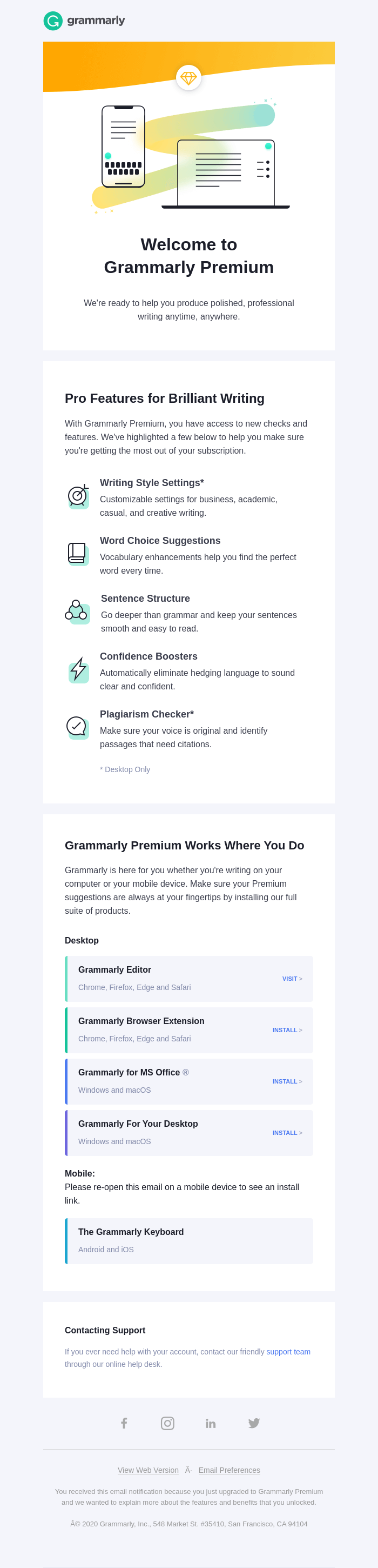 Check out this amazing example of a customer onboarding email from Grammarly.