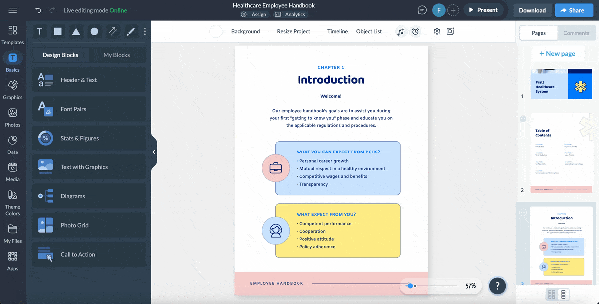 From customizable templates and branding tools to interactivity, online sharing and real-time updates, you can build, share and maintain your handbook all in one place. Plus, with built-in collaboration tools, your team can contribute to keeping your handbook current and relevant.