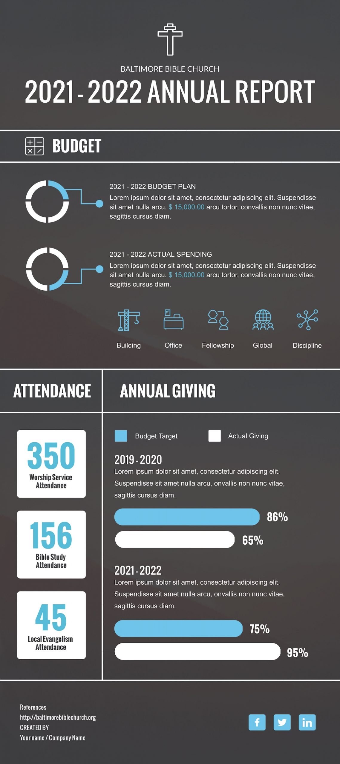 Al igual que las empresas tradicionales, las organizaciones sin fines de lucro pueden usar infografías para llamar la atención sobre su causa. Las imágenes creativas probablemente harán que los navegadores hagan una doble toma y, aún más, los convencerán de que examinen de qué se trata su trabajo. Las sugerencias incluyen: