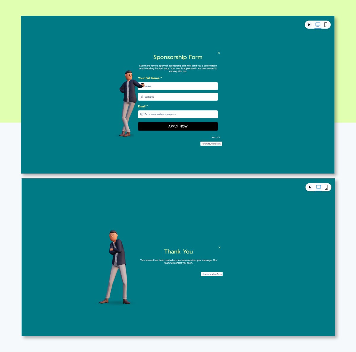 You can embed forms created in Visme directly on your website using the HTML feature, so anyone visiting your sponsorship page can register on the spot.