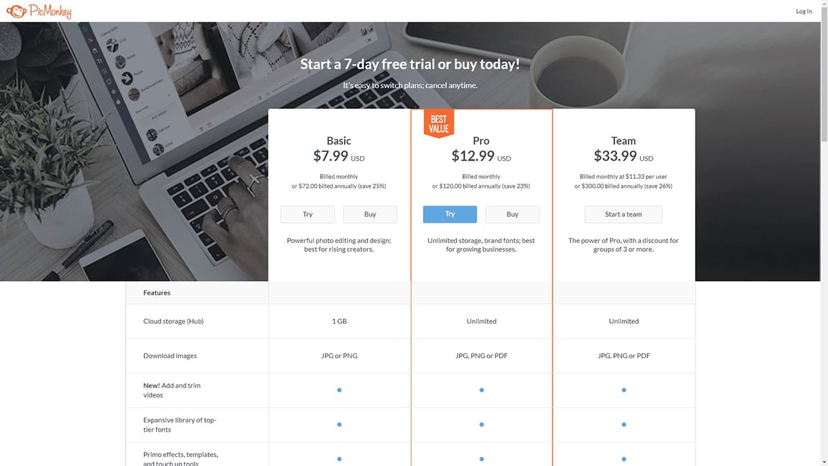 Avec PicMonkey, il n'y a pas d'abonnement gratuit.