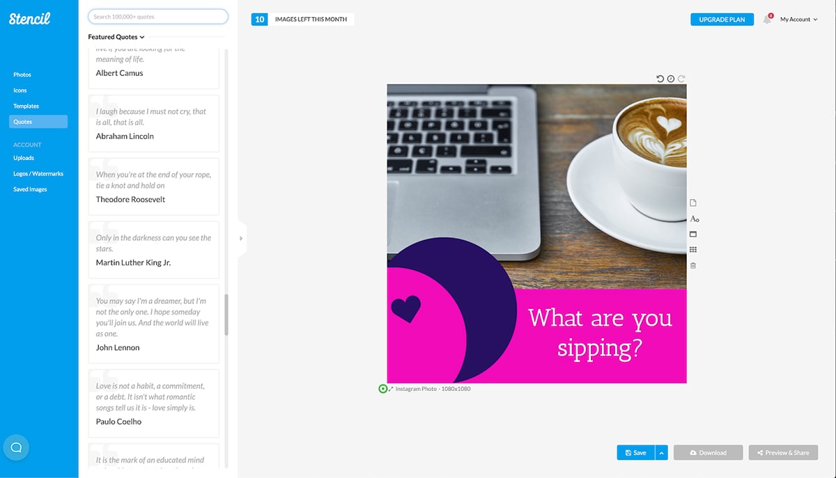 Le principal cas d’utilisation de Stencil consiste à créer des images simples avec superposition de texte. Si vous envisagez de répéter à plusieurs reprises un type particulier de contenu basé sur des citations, alors Stencil mérite d'être étudié.