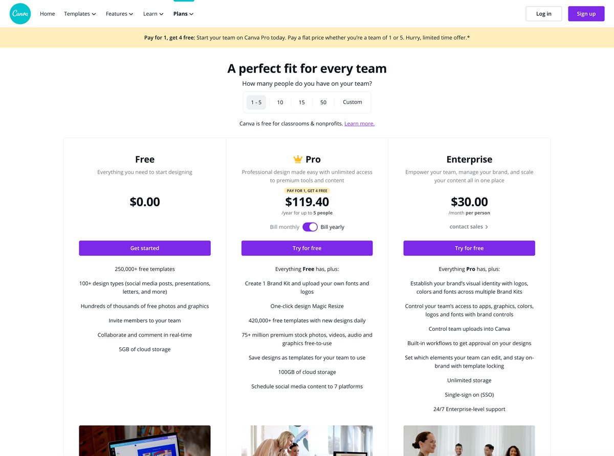 Si vous travaillez dans un contexte d'entreprise et avez besoin de responsabiliser une équipe, Canva commence à 30$ par mois et par utilisateur.