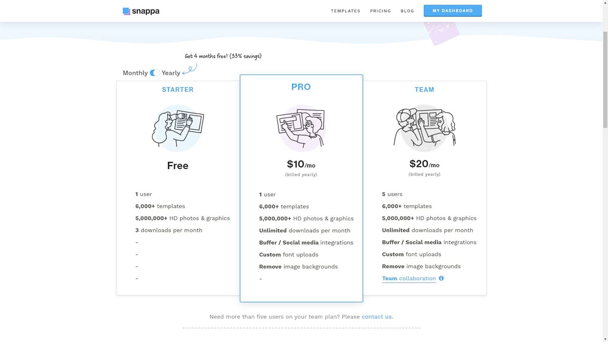 Snappa propose trois niveaux parmi lesquels vous pouvez choisir.