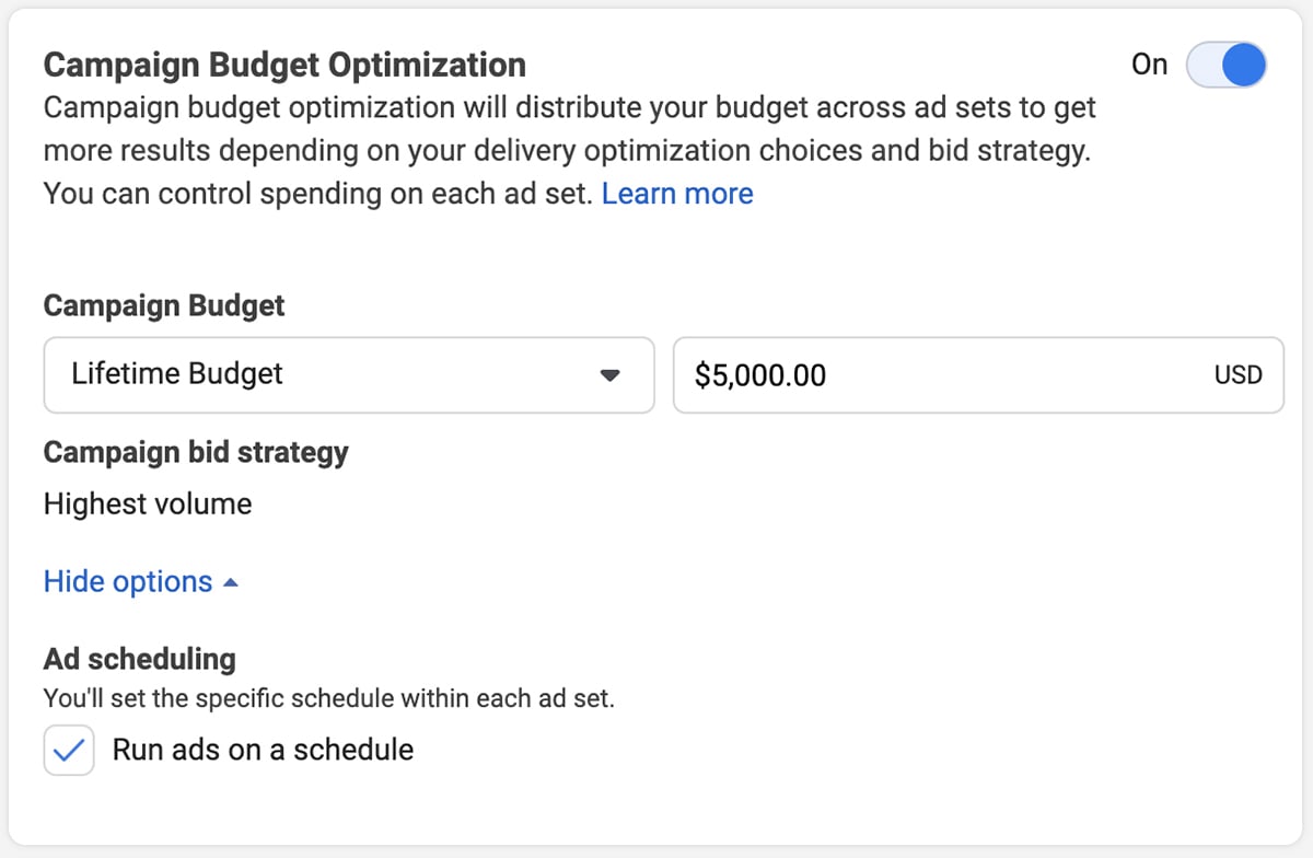 Vous pouvez également choisir de définir un calendrier pour votre campagne afin que vos annonces ne soient diffusées que pendant une période spécifique et à des jours ou à des heures spécifiques de la semaine.