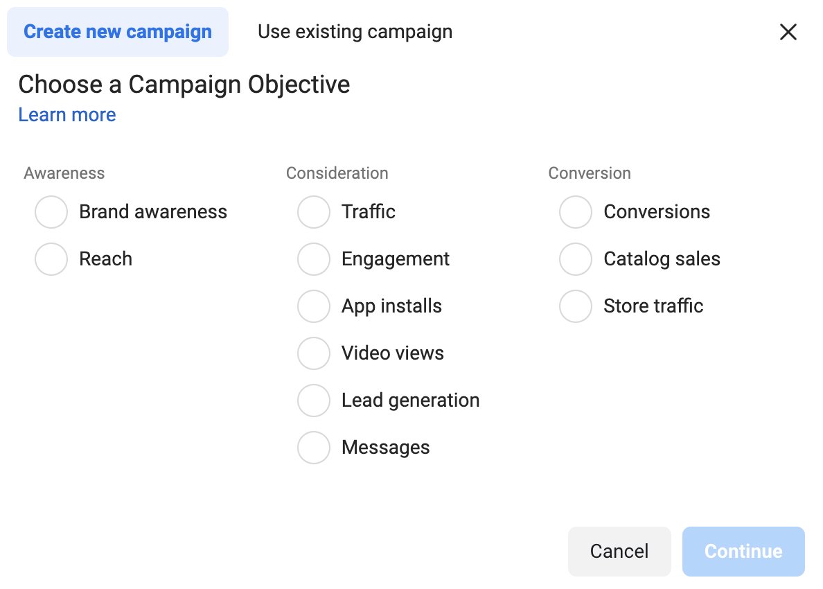 Bien que la définition de votre objectif publicitaire soit une étape obligatoire dans Facebook Ads Manager, cela aide également à guider votre publicité afin que vous sachiez exactement quel public cibler et comment encadrer votre texte publicitaire et votre création.