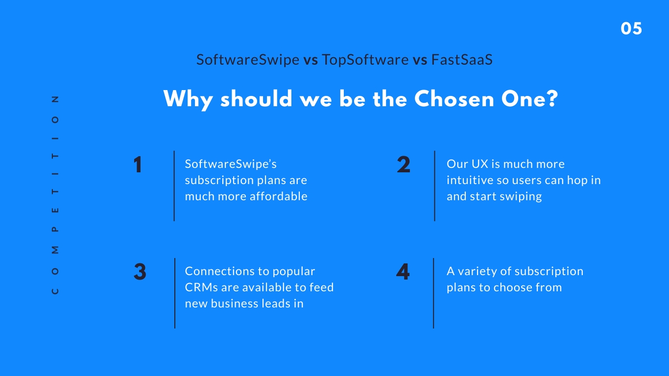 Point clé à retenir : Si votre produit est unique et meilleur que la concurrence, il se vendra tout seul. Dans le cas des pitch decks, les excellents produits sont susceptibles d'attirer les investisseurs même si vous ne vous concentrez pas trop sur le design.