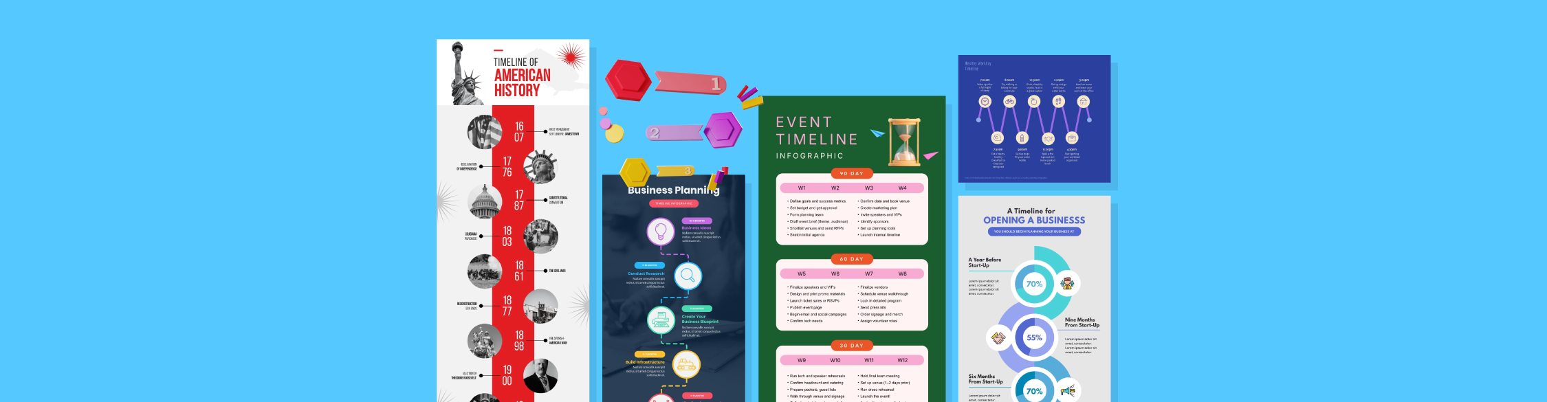 You can use timelines to plan a project, map out a workflow, visualize your brand story, break down a historical sequence, organize an event or share a roadmap with your team. They give your audience a clear view of what happens first, what comes next and how long each stage is expected to take.