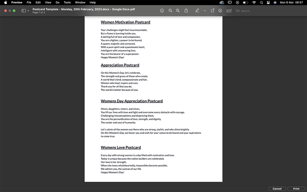 5. When you click Open PDF in Preview, the document opens as a PDF.