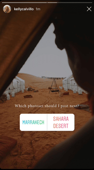 Kelly is a photographer, so she’s directly asking her followers which of her photosets they would like to see in the next post.