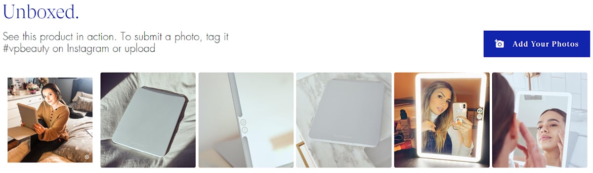 You can also add these photos to your landing pages, like Vanity Planet did, and boost social proof.