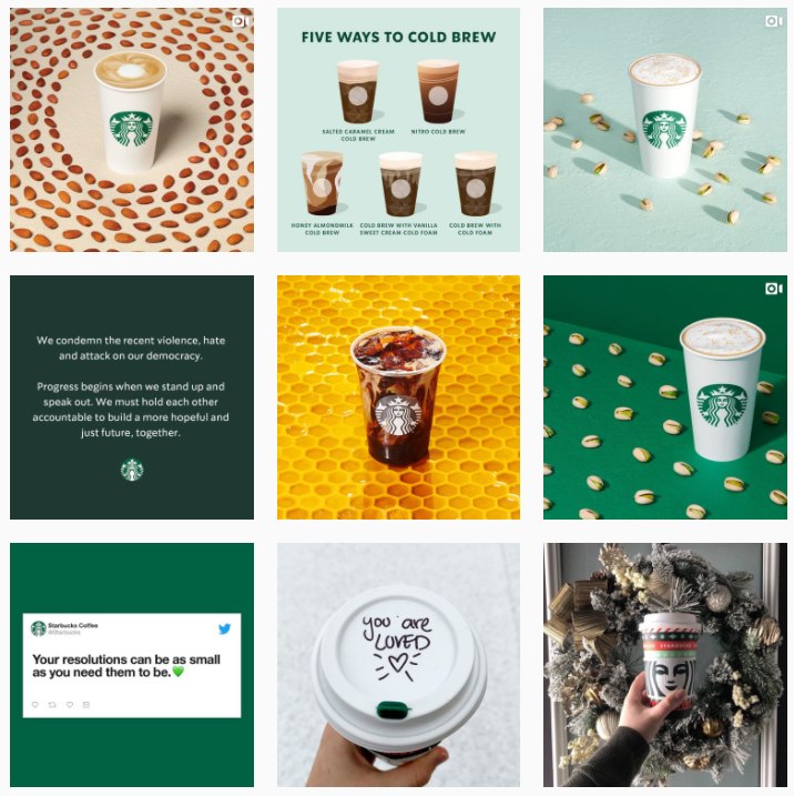 Another one is Starbucks. They’re very consistent with using the green color or another color that complements it and their logo.