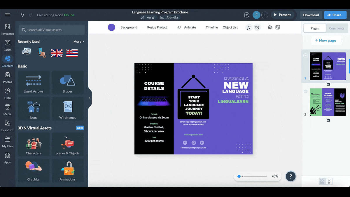 Bonus point: You can easily modify the size of your brochure for easy sharing across various social media channels using Visme’s brochure maker.