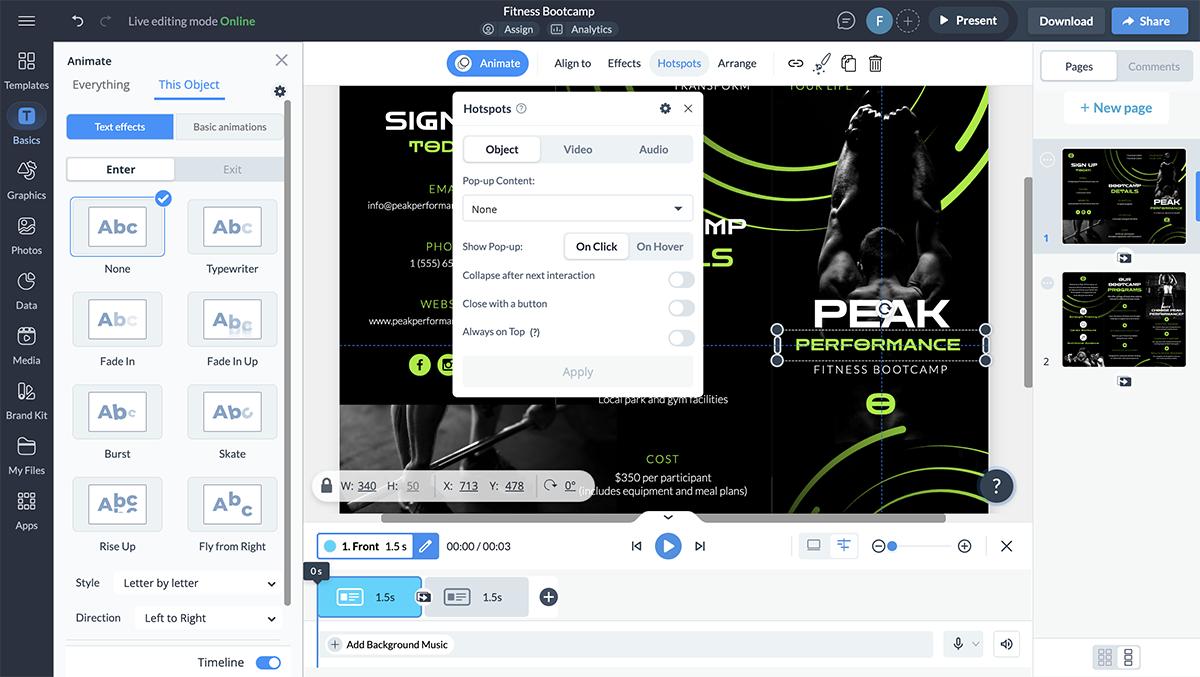 Make it yours by customizing the messaging and branding to match your identity. Take it a step further by animating the headings to highlight key details. You can also use hotspots to give additional information while keeping the design clean.