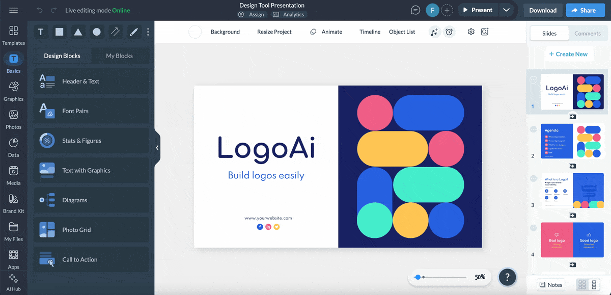 At this point, you’re primed to start building the presentation itself. The structure is laid out, the written content is ready and you’ve got a bunch of images and videos to use in the design. If you haven’t yet, choose your content creation tool to get started.
