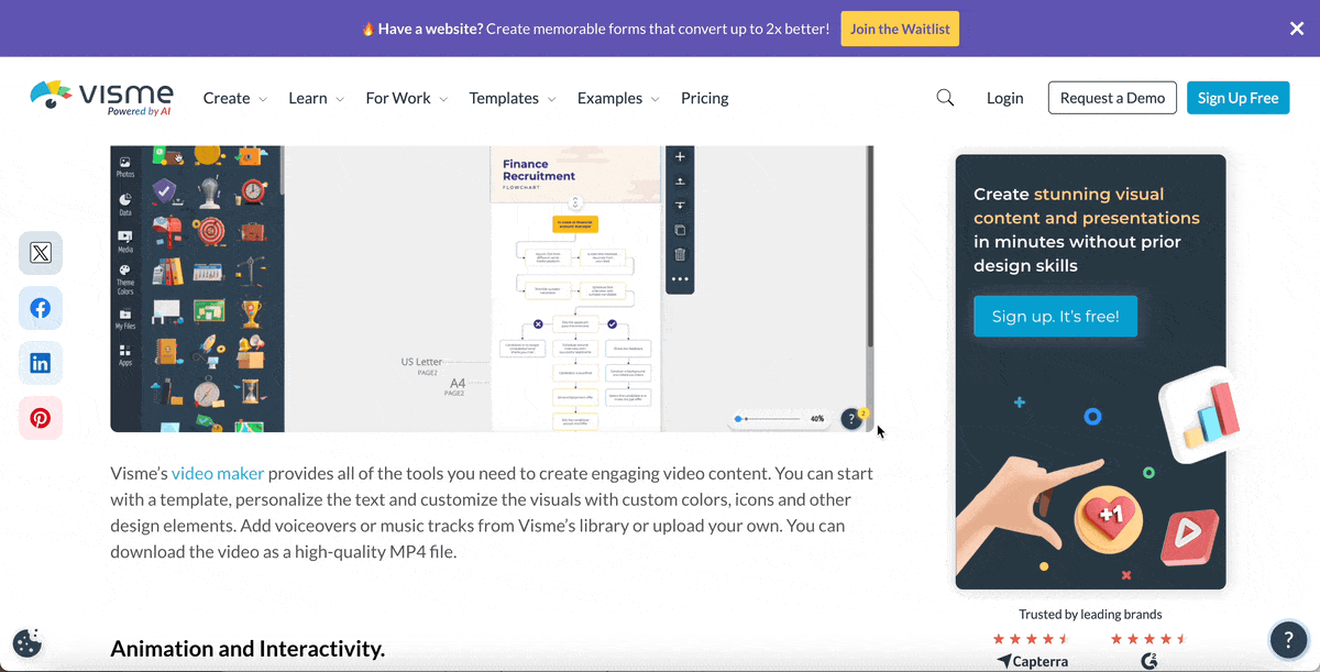 Visme’s online form builder is a powerful lead capture software that creates stunning and effective lead capture forms in just minutes.