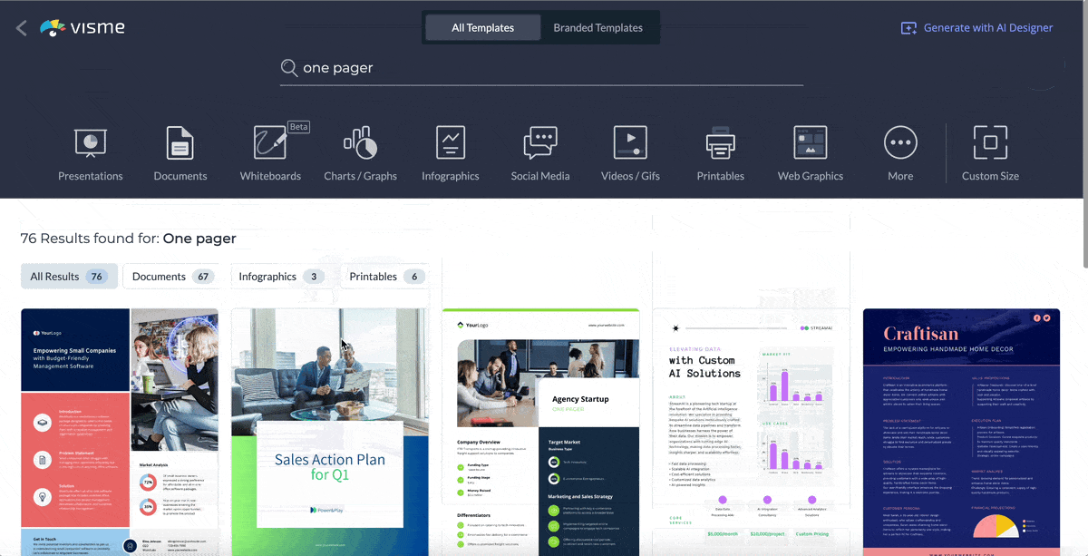 Visme's user-friendly interface makes it easy to customize the one-pager templates.