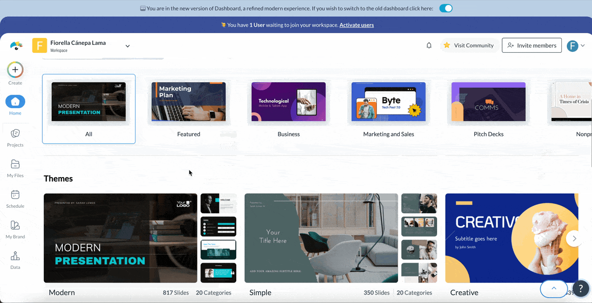 Log in to your Visme dashboard to start designing your presentation. Either choose a presentation template or start with a blank one. To have full control of accessibility standards, I suggest you start with a blank template.