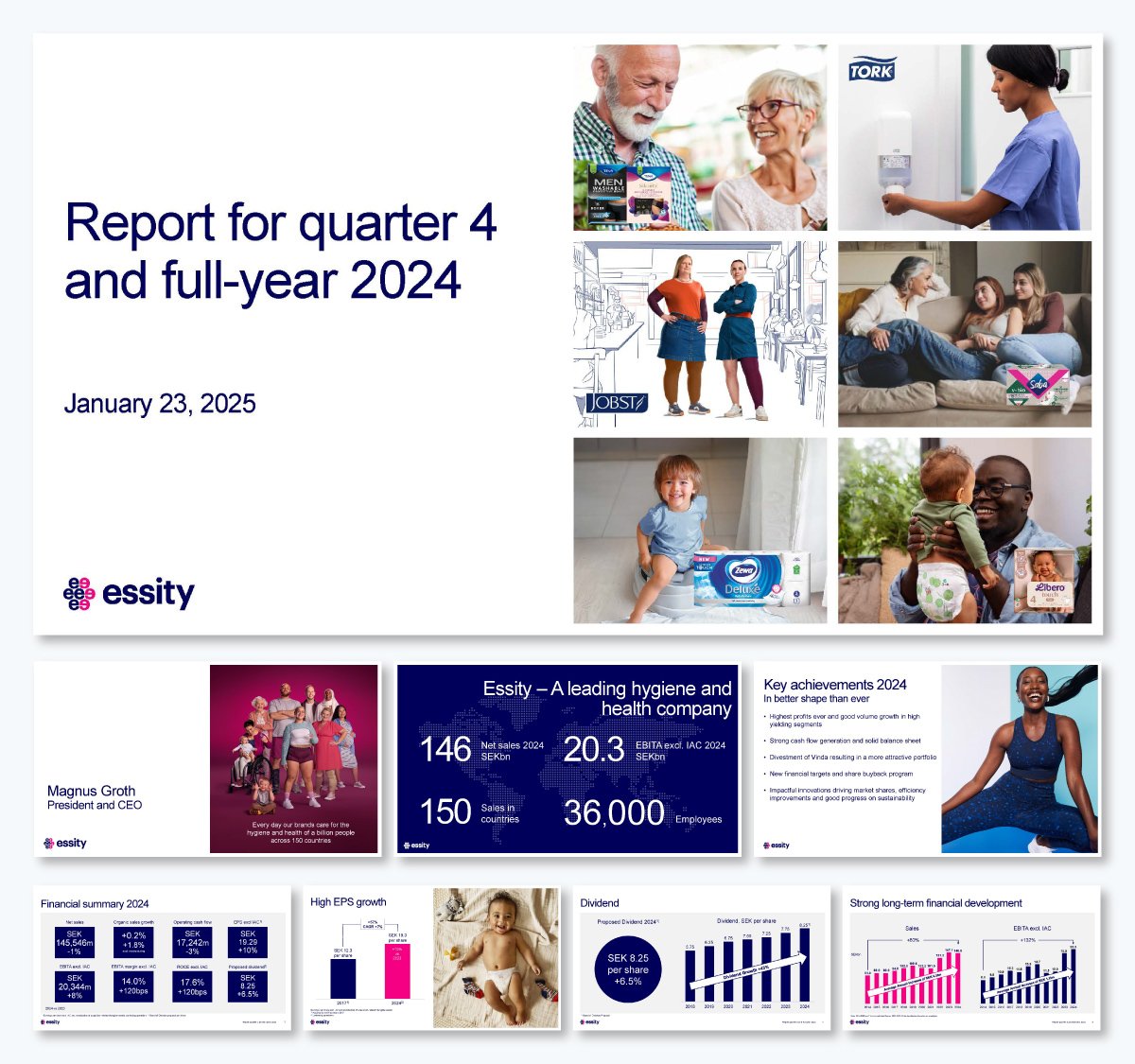 Essity, a leading global hygiene and health company, created this presentation to report on their work and growth during 2024. These are the aspects that make this presentation accessible: