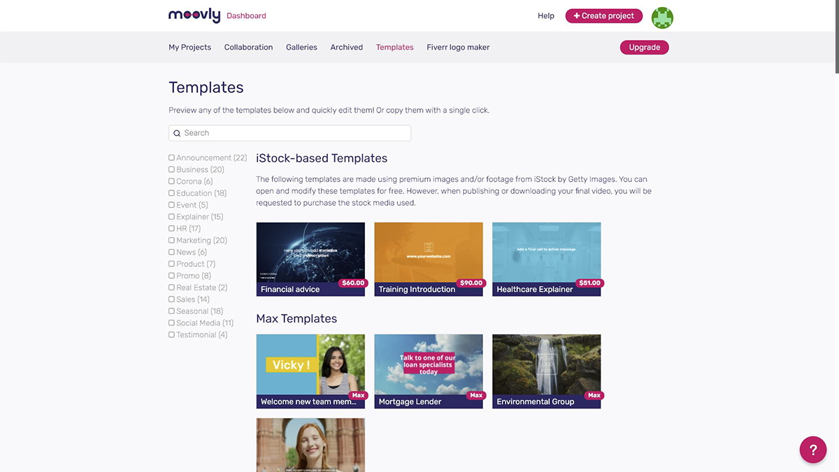 There are dozens of video templates available in Moovly, and they all look very professional, which makes them a great fit for businesses.