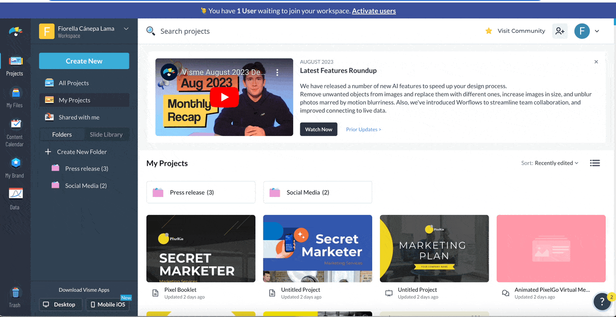 Either way, you'll be able to start exploring all the amazing features and tools that Visme has to offer!