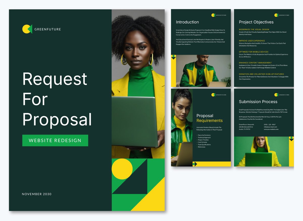 The majority of RFPs in the examples section above were simple documents with minimal design elements. But that doesn’t mean you must create yours in that same style. You might want to have a more visual document that’s engaging and attractive.