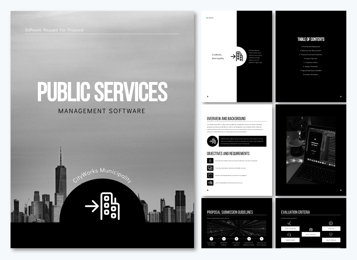 This ten-page template has everything you need to create a request for proposal(RFP) for a municipality seeking a software vendor to create a custom solution to manage public services effectively.