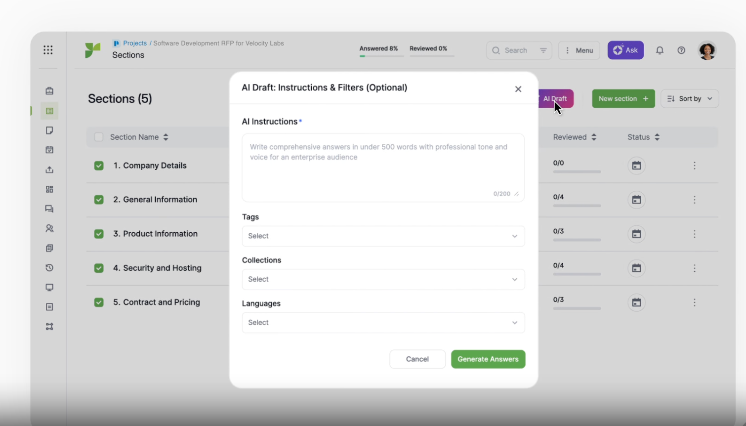 Modern RFP software leverages AI to support the response process.