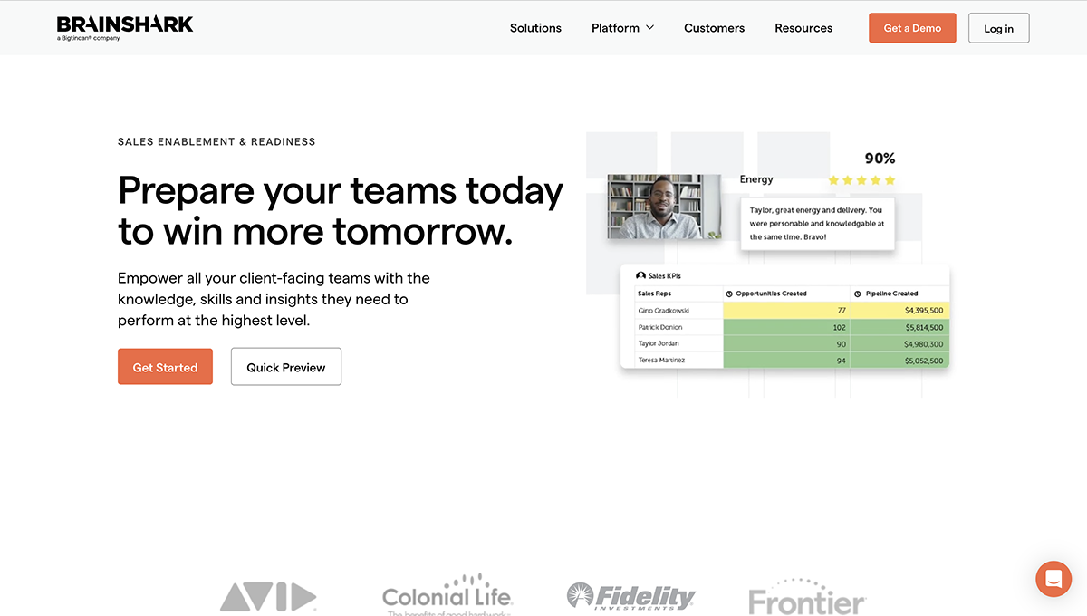 Brainshark is a comprehensive tool for sales enablement training, coaching, content, and analytics. It provides sales teams with the necessary knowledge and skills accelerators through multi-form content, including videos, quizzes, documents, and infographics.