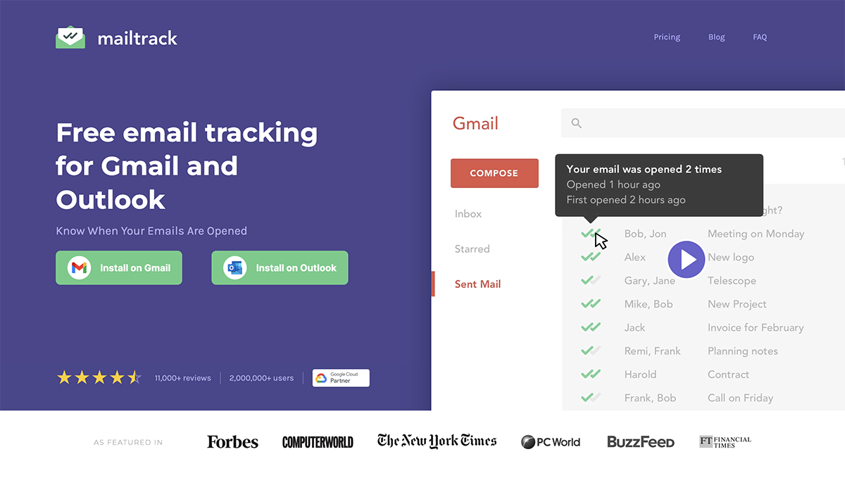Mailtrack empowers users with simple, effective email-tracking solutions. As a popular choice for Gmail and Inbox, it provides real-time notifications on email tracking and reveals how often an email gets opened.