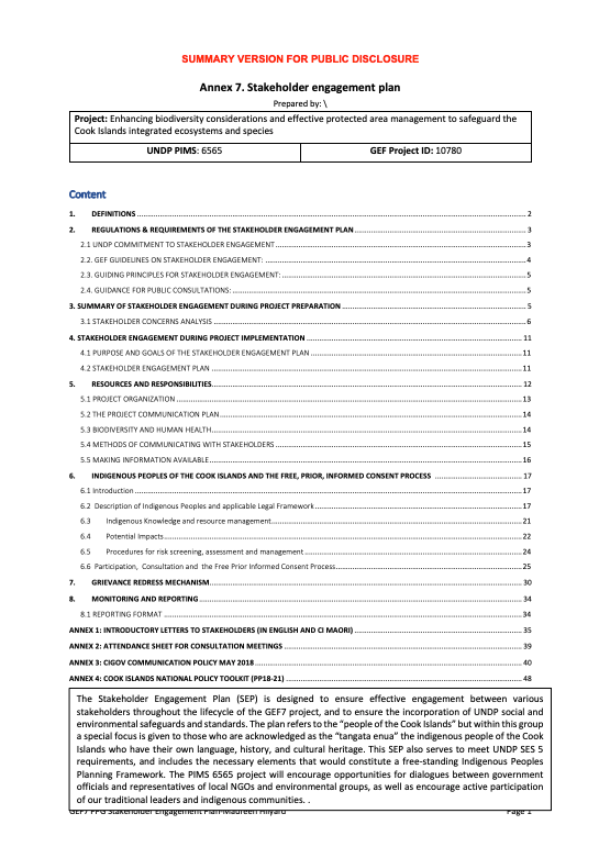 They created this 51-page stakeholder engagement plan to support meaningful engagement throughout the lifecycle of a GEF7 project.