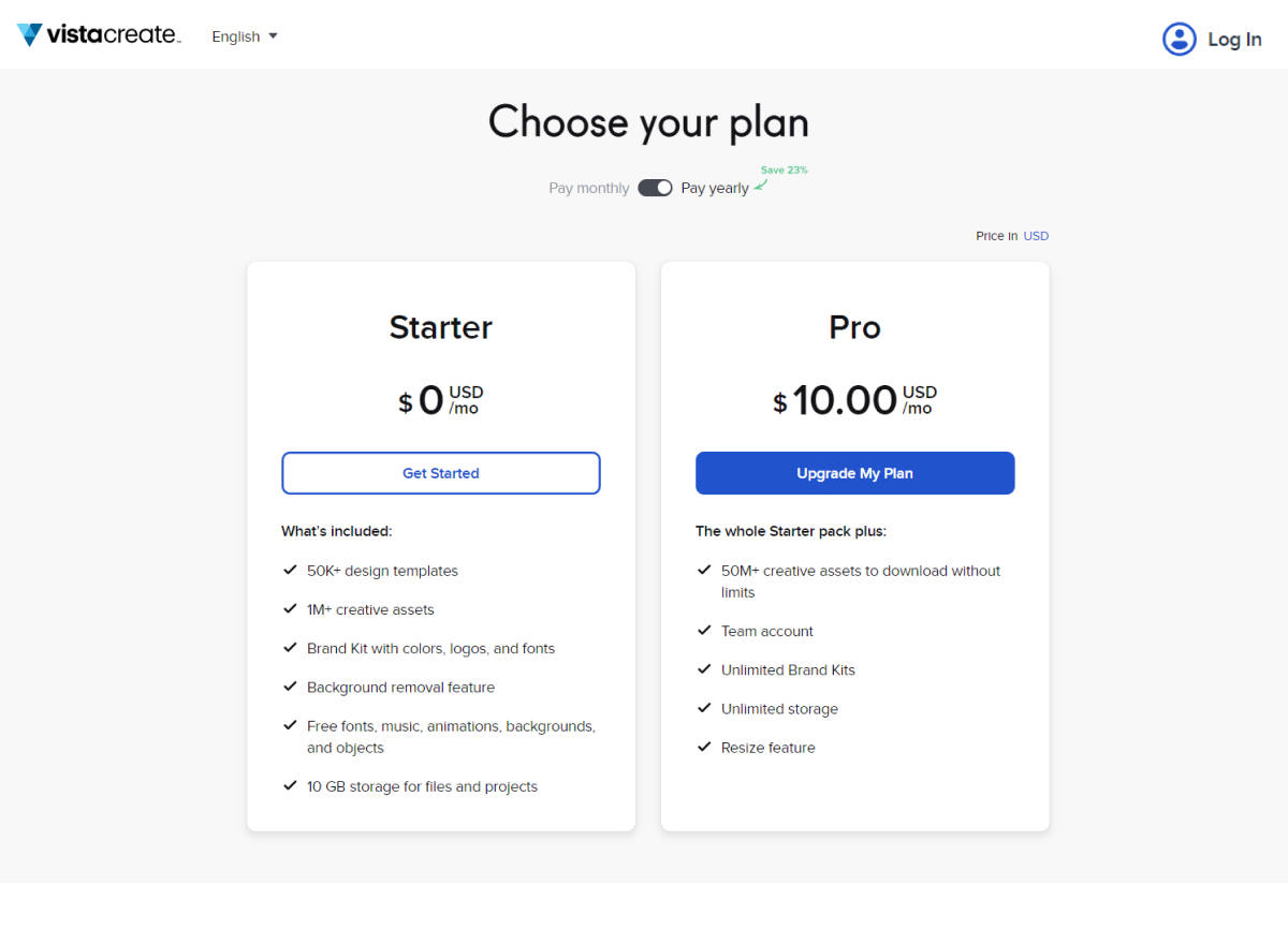 Vista , aracı denemek için kabul edilebilir sınırlara sahip Ücretsiz bir plana sahiptir.