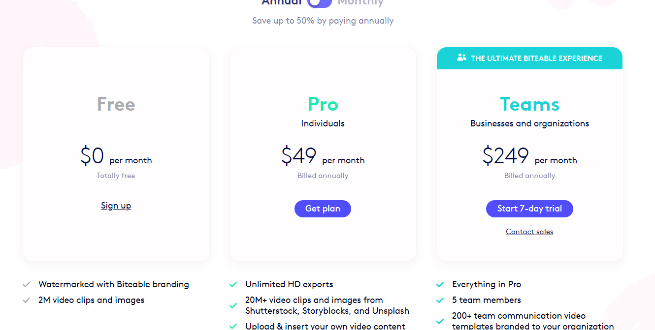 Ücretsiz Biteable planları istediğiniz kadar video sunar, ancak bir Biteable filigranı olacak ve düşük kalitede olacaktır.