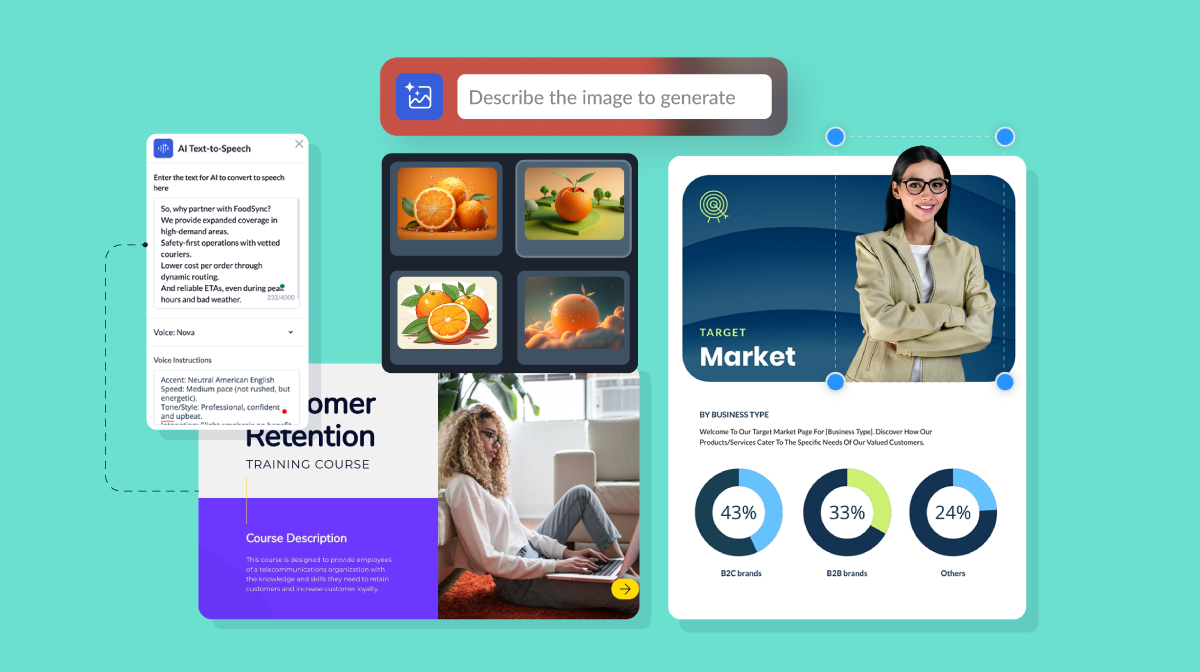 If you already have images to include, upload and edit them using our photo editor or AI image editing tools and add them to your learning materials.