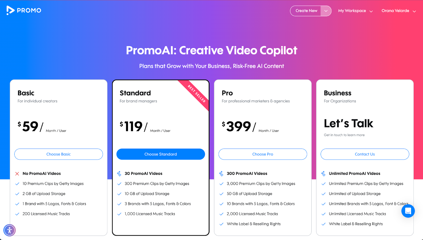 The free plan only lets you create four videos, but you can’t download them. Also, with the free plan, you can’t use PromoAI. To be able to actually download or share videos, you need to get a subscription. That said, I feel that the free plan is more than enough to get a good feel for what Promo can do without AI.