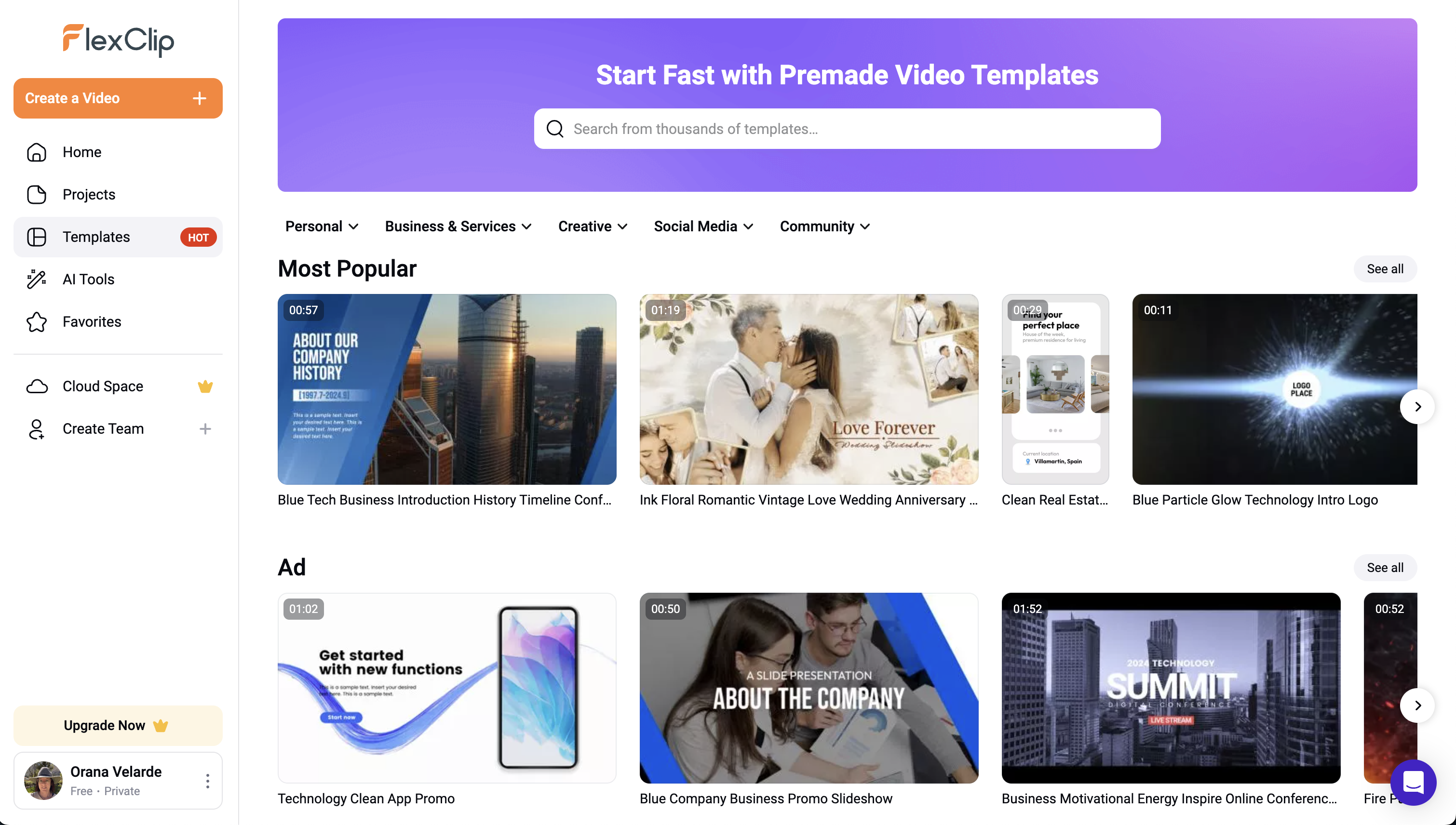 FlexClip offers a wide selection of templates for different video types, including social media videos, business videos, and personal videos. These 5000+ templates are customizable and can be used as a starting point for creating a video presentation.